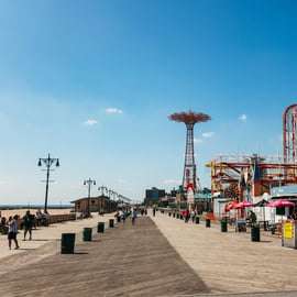 Se você escolheu a opção que inclui Coney Island, prepare-se para a diversão! Este destino clássico de Nova York oferece um calçadão animado e o lendário restaurante Nathan's (almoço não incluído). Aproveite para explorar o local e relaxar, se o tempo permitir.