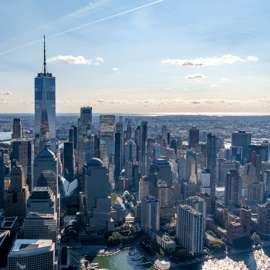 Decole e sobrevoe o Aeroporto Internacional de Newark, rumo à icónica Manhattan. Aproxime-se do porto e contemple a majestosa Estátua da Liberdade, antes de se maravilhar com os imponentes arranha-céus do Distrito Financeiro, incluindo a vibrante Bolsa de Valores de Nova Iorque.