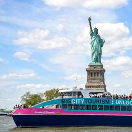 Navegue pelo Hudson num barco ecológico, tire selfies com a Estátua da Liberdade e ouça histórias ao vivo de um nova-iorquino nativo – além de um transporte gratuito para as principais atrações de Nova Iorque.